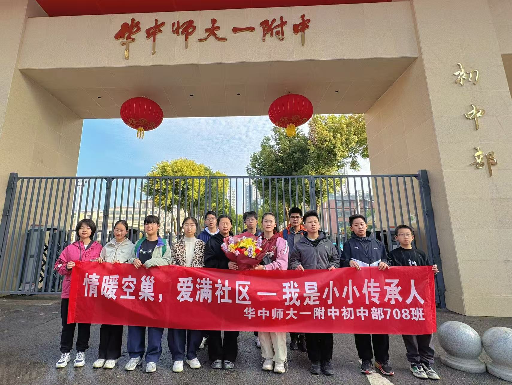 春风送暖,万物复苏。3月14日上午8时30分,在这个春意初绽的清晨,华中师大一附中初中部708班志愿者分队以“学雷锋·文明实践我行动”为主题,积极开展争做新时代“雷锋”少年系列活动。志愿者们齐聚校门口,怀揣着满满的爱心与精心准备的慰问品,整齐列队步行至军休所红星社区,开展了一场意义深远的敬老爱老志愿服务活动。