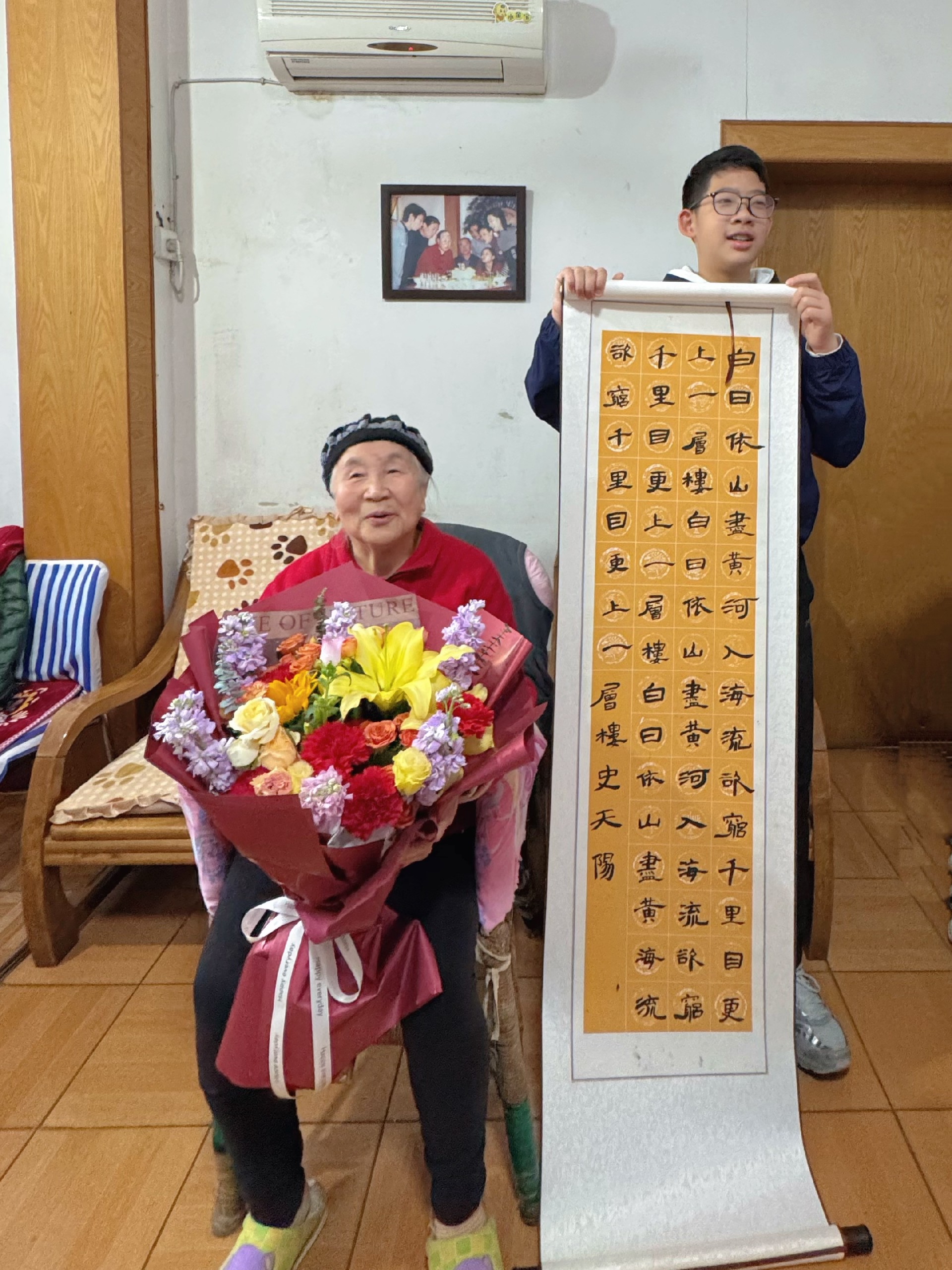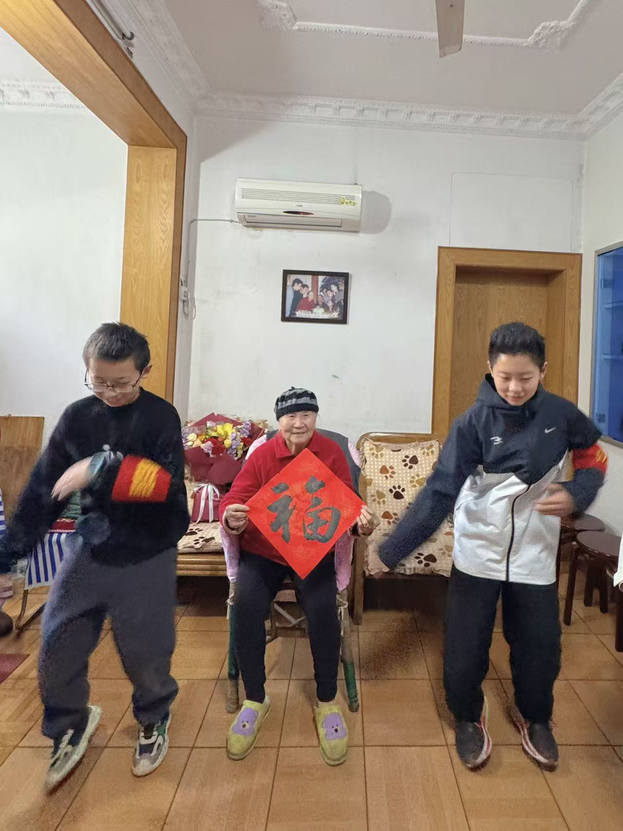 为了这次相见,同学们早早便用心准备。他们拿出自己的零花钱和压岁钱,精心挑选了贴心的礼物:寓意平安的苹果与橙子、饱含祝福的长寿面与红枣、营养丰富的牛奶与鸡蛋……每一份礼物,都由同学们双手送上,伴随着一句句“祝奶奶身体健康,福如东海”的稚嫩祝福。礼物虽不贵重,却件件满载着七年级学子对长辈最纯粹的关爱。小小的屋内,温情流淌,笑意盎然。