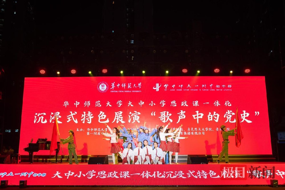 极目新闻记者 国倩通讯员 章元元实习生 李新依“从小爷爷对我说,吃水不忘挖井人,曾经苦难才明白,没有共产党哪有新中国。”11月29日晚,随着一曲《在灿烂阳光下》,华中师范大学大中小学思政课一体化沉浸式特色展演“歌声中的党史”在华中师大一附中初中部正式开讲。现场,2600余名大中小学师生同上一堂思政课,随着悠扬的···