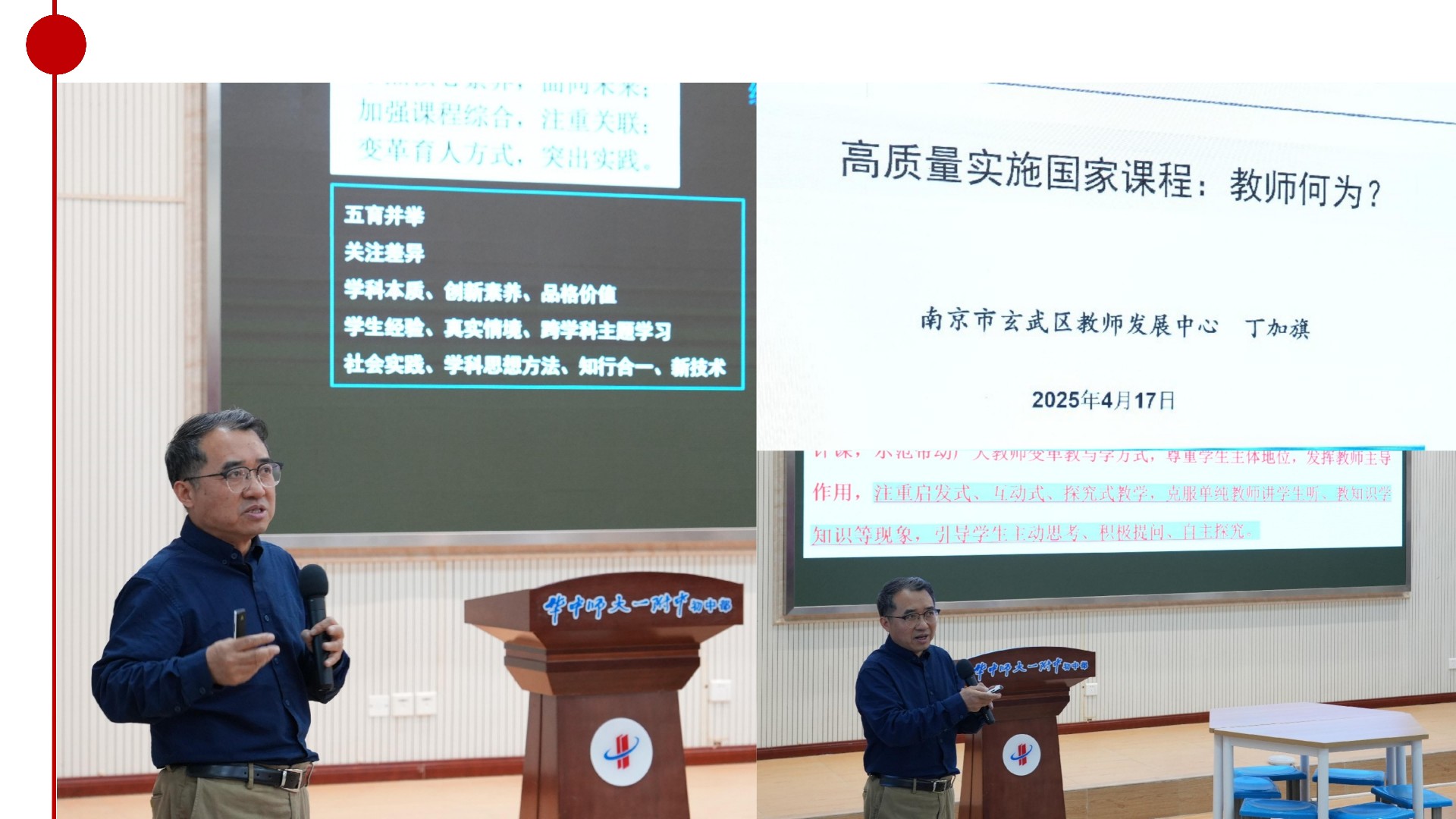 ▲ 4月16日下午,校教师研修第三期活动邀请丁加旗老师作《高质量实施国家课程》讲座。