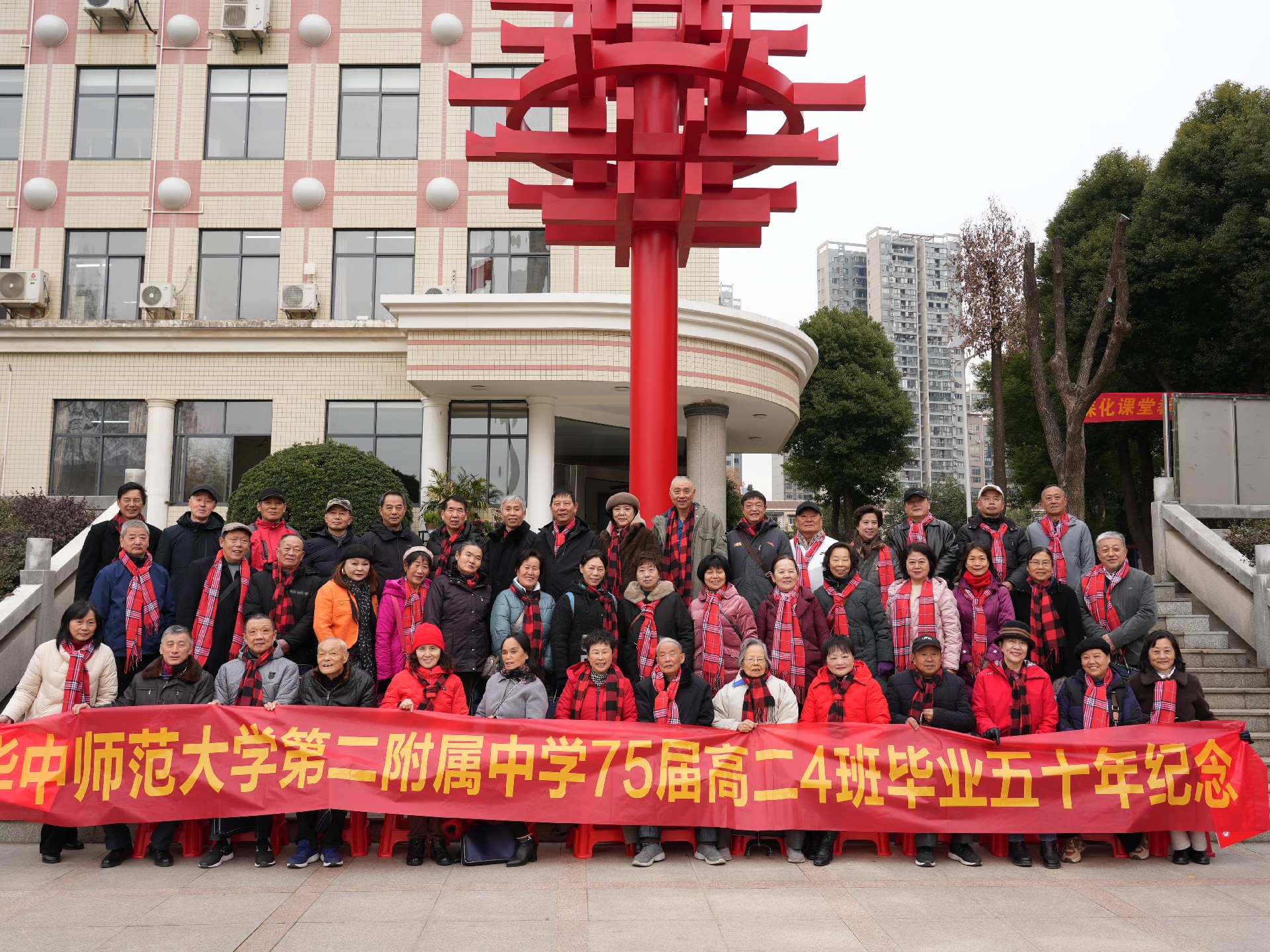 2025年1月9日上午,原华师二附中75届高二4班校友返校。在毕业五十周年之际,50余名昔日同窗与师长一同漫步在校园中,共叙师生、同学情谊,回忆往昔青春岁月,一路欢声笑语。学校办公室章元元老师陪同校友们一同参观校园。